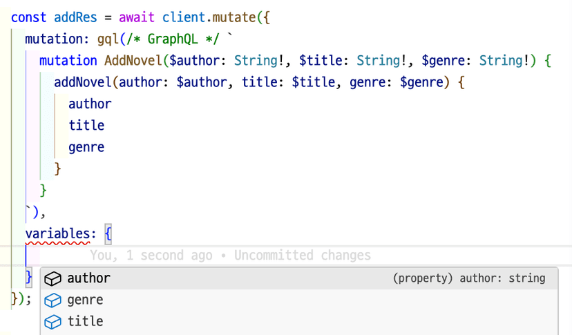 mutation AddNovel($author: String!, $title: String!, $genre: String!) {